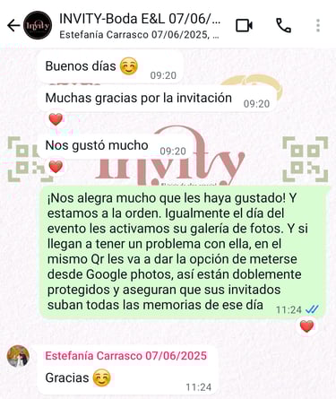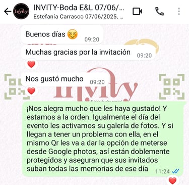Además, complementamos tu invitación con servicios adicionales como Save the Date, confirmación de asistencia y control de accesos, todos adaptados perfectamente a tus necesidades.